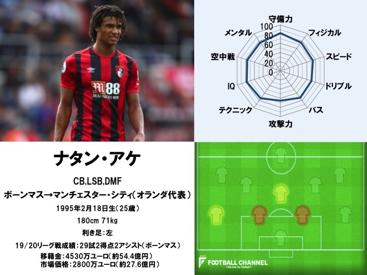 チェルシーでプロデビュー後はレンタル移籍を繰り返すなどなかなか芽が出なかったが、2016年に加入したボーンマスで才能を開花。以降、同クラブには欠かせぬ守備リーダーとなった。その活躍が認められ、今夏にマンチェスター・シティ移籍を掴み取った。移籍金は4530万ユーロ(約54.4億円)とされており、契約期間は2025年までの5年間となっている。