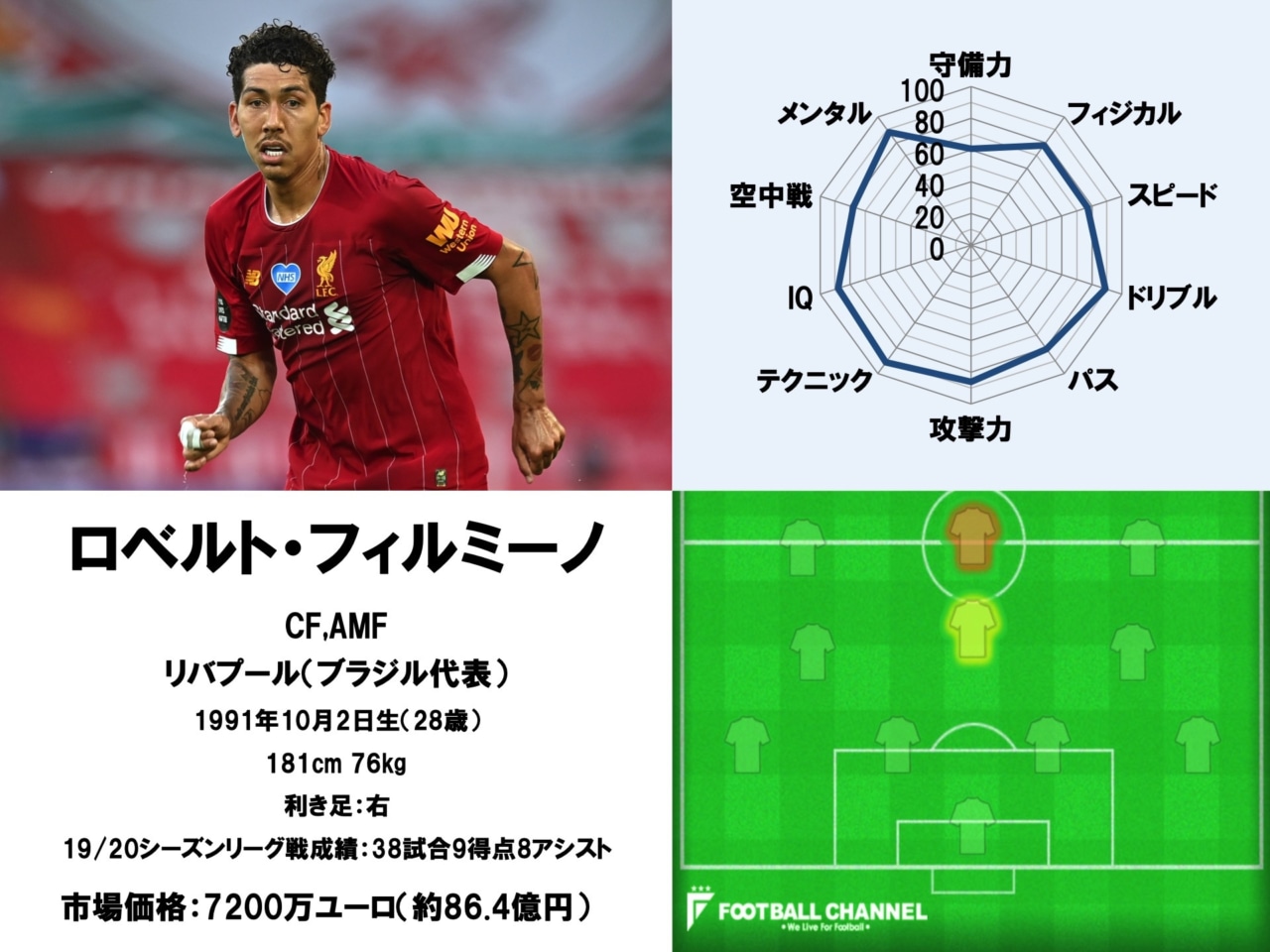 ファーストディフェンダーとして敵陣でボールを追い、押し込まれれば自陣にプレスバックして守備に貢献する。プレミアリーグ全体を探しても、フィルミーノ以上にピッチのあらゆるエリアに顔を出すFWはいないだろう。