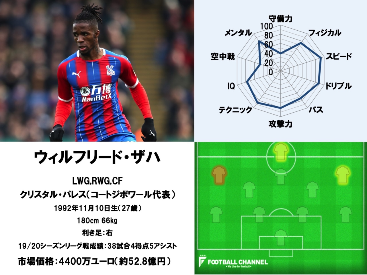 世代別代表のイングランド代表でもプレーしていたウィルフリード・ザハは、アレックス・ファーガソン監督率いるマンチェスター・ユナイテッドに20歳で加入した。ユナイテッドでは居場所を築けなかったが、15年に完全移籍した古巣のクリスタル・パレスで高い潜在能力が開花した。