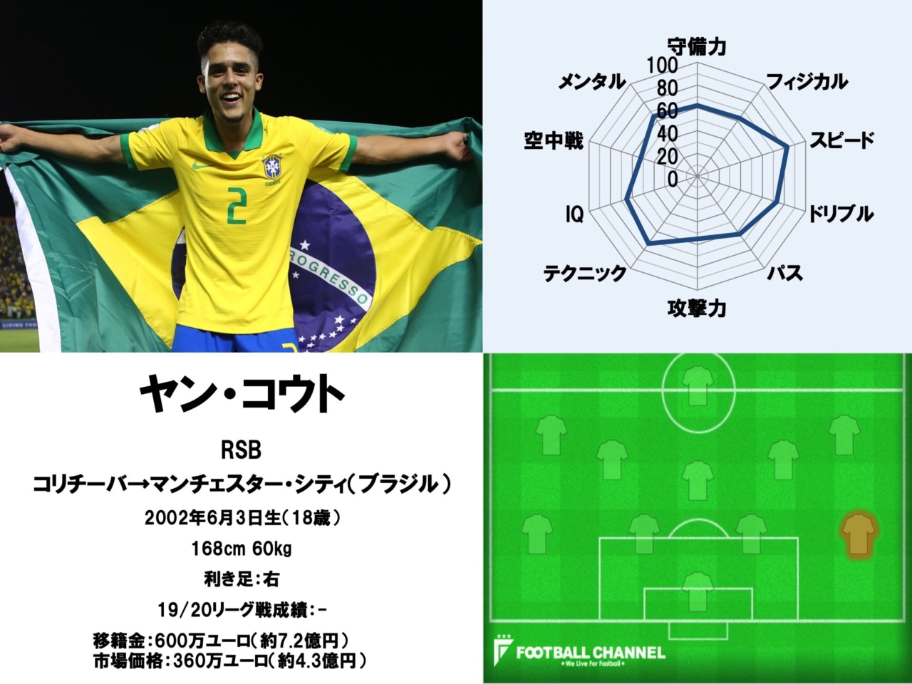 2002年生まれのヤン・コウトはコリチーバの下部組織出身で、今年にトップチーム昇格を果たしたばかりの選手だ。ブラジル全国選手権などへの出場歴はもちろんなく、カンピオナート・パラナエンセ(パラナ州選手権)の2試合を経験したのみだった。