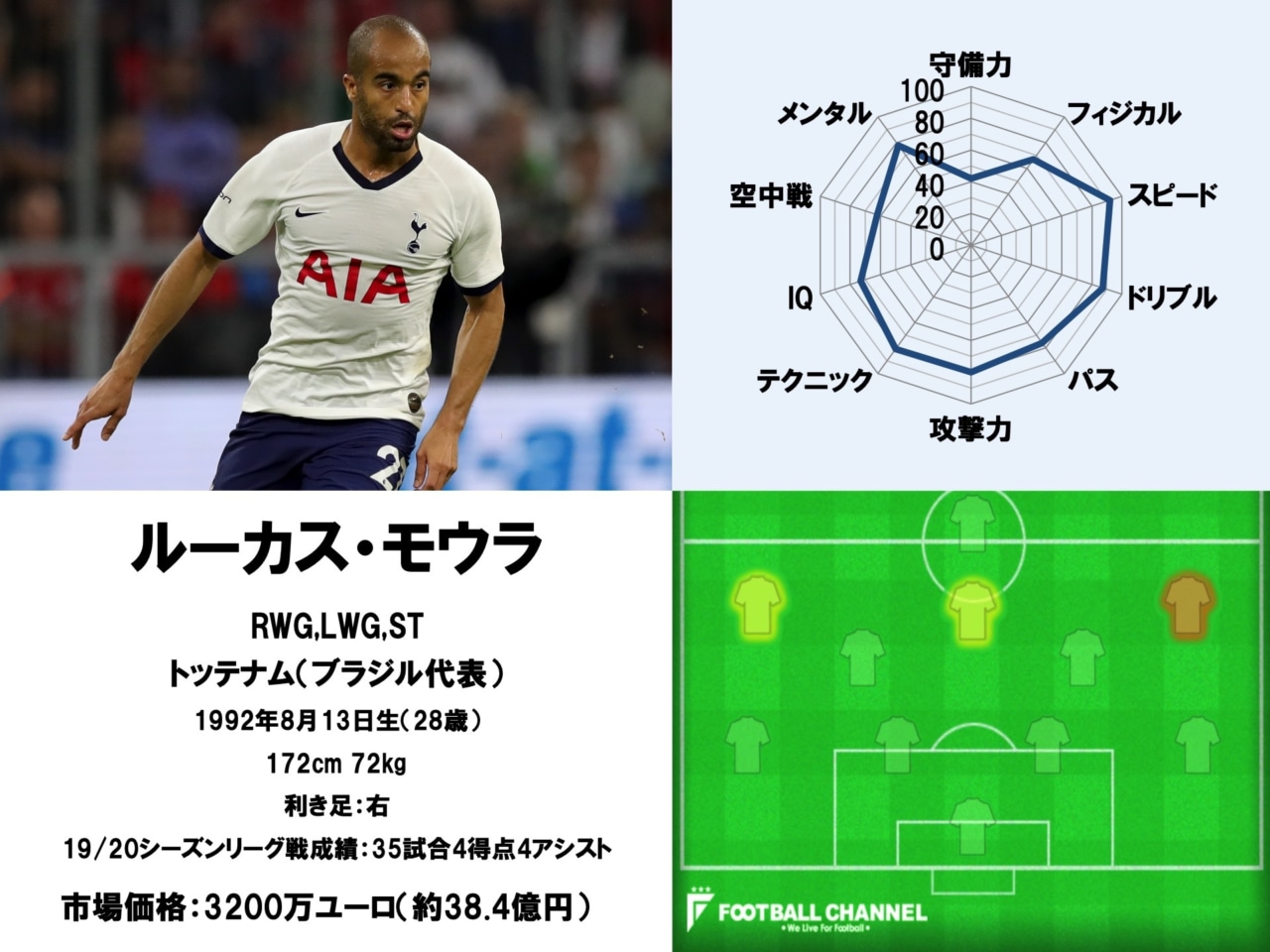 ブラジル出身のルーカス・モウラが欧州へ渡ったのは20歳のときで、サン・パウロからパリ・サンジェルマンへと移籍している。5年間で公式戦229試合に出場し、18年1月にトッテナムへ加入した。