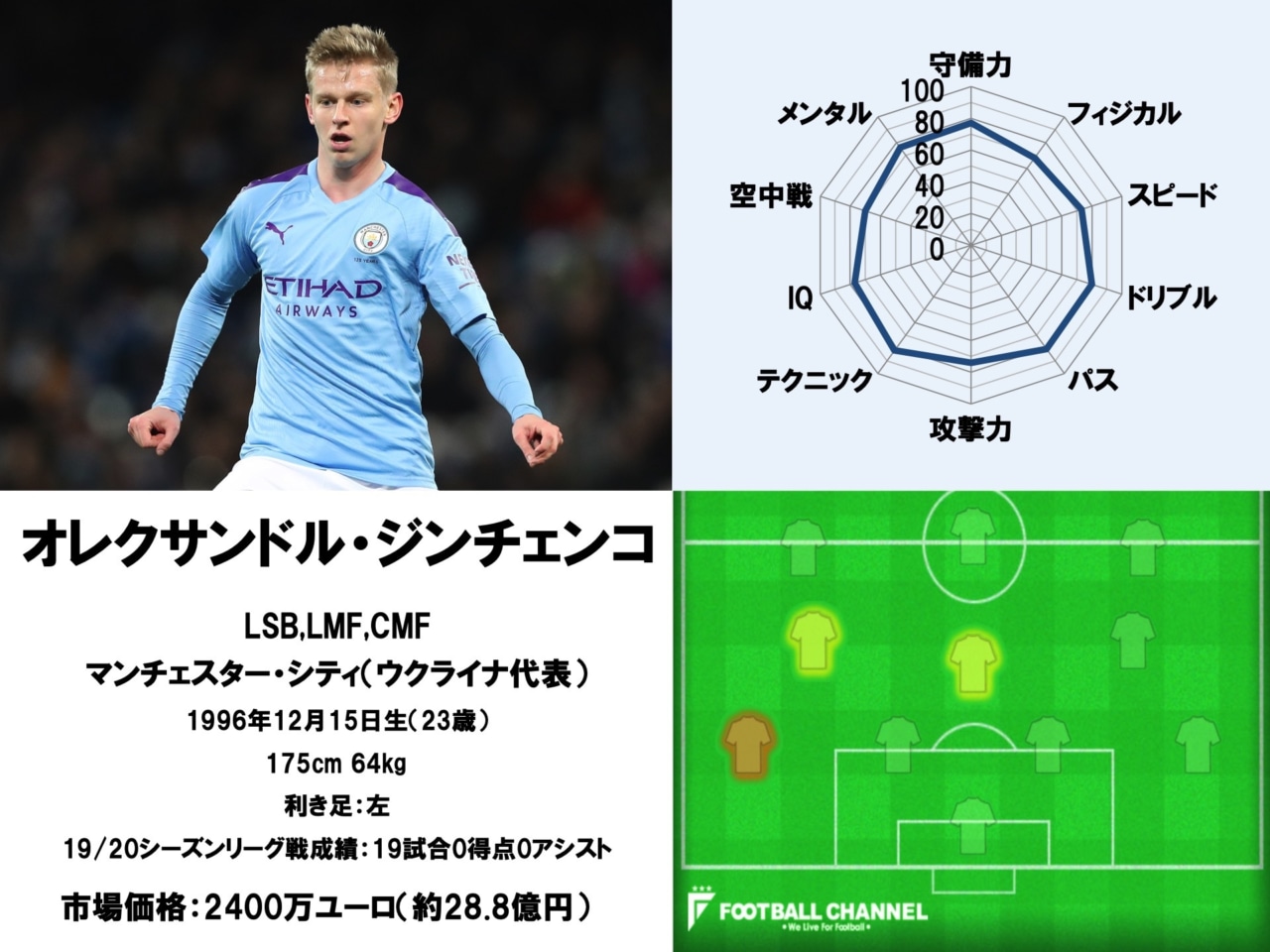 将来を嘱望されたウクライナ出身の攻撃的MFは、マンチェスター・シティの左サイドバックに居場所を築いている。鋭い「ドリブル」や左足から放たれるキックの精度は、シティの攻撃に厚みをもたらしている。