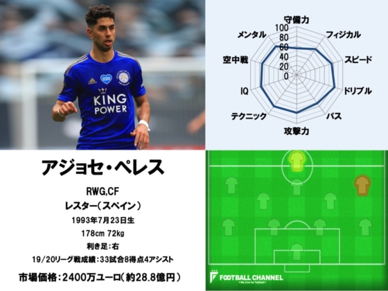 スペインのテネリフェ島出身のアジョセ・ペレスは、21歳のときにニューカッスルに移籍した。1年目からレギュラーを獲得し、18/19シーズンには12得点をマーク。19/20シーズンからはブレンダン・ロジャース監督率いるレスターに移籍している。