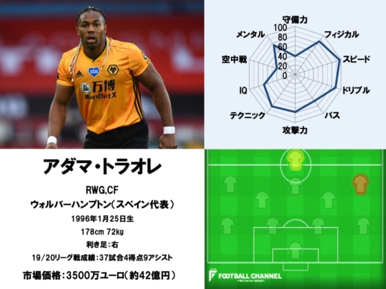バルセロナの下部組織出身であるアダマ・トラオレは、当初プロとしてなかなか芽が出なかったものの、2016年より加入したミドルズブラでレギュラーの座を掴むと、その後ウォルバーハンプトンへステップアップ。現在は同チームにおいて欠かせないピースとなっており、リバプールなど複数クラブに興味を示されるほどの選手となった。