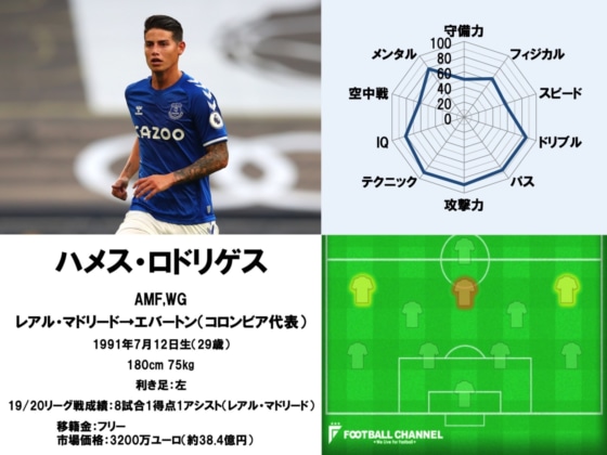 ハメス・ロドリゲスの能力値や19/20リーグ戦成績など【写真:Getty Images】