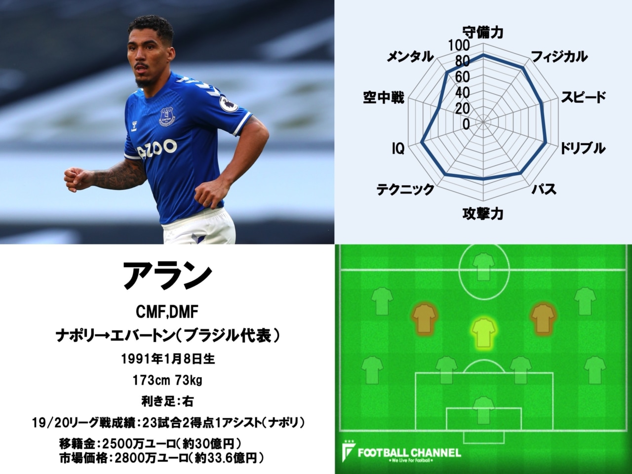 そんなアランは今夏、5年を過ごしたナポリを離れることを決断。新天地はイタリアの地でも指導を受けたカルロ・アンチェロッティ監督率いるエバートンに決まった。契約期間は2023年6月30日までで、移籍金は2500万ユーロ(約30億円)。背番号はウディネーゼ在籍時以来となる「6番」に決まった。