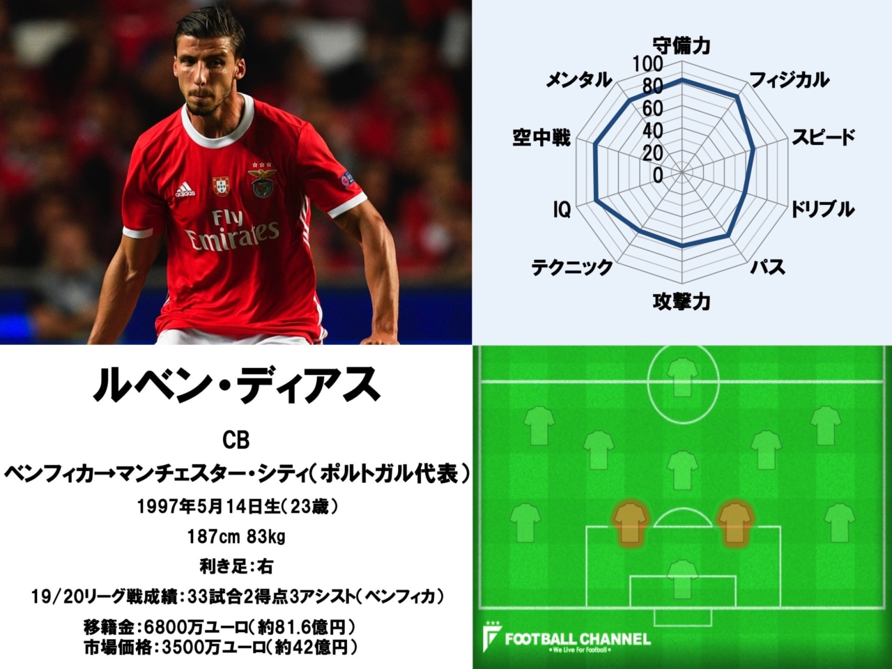 そんなルベン・ディアスの獲得を発表したのはマンチェスター・シティだった。契約期間は6年間で、移籍金はボーナス含めると最大90億円近くなるとのことだ。ちなみに、シティはニコラス・オタメンディをベンフィカに放出することも合わせて発表している。