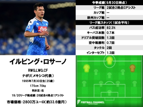 ロサーノは20歳からメキシコ代表でプレーしており、2018年のワールドカップではドイツ代表に勝利した試合でゴールを決めている。ナポリ1年目の昨季は高額な移籍金に見合う活躍ができなかったが、名誉挽回とばかりに躍動している。