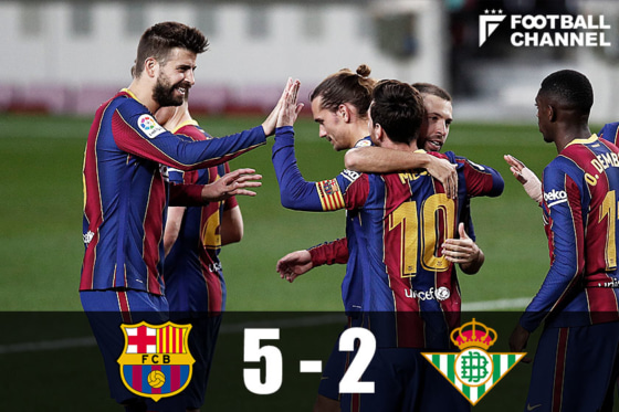 73分にベティスのロレン・モロンにゴールを決められるが、82分にメッシが得点。90分にはペドリが得点し、リードを守り切ったバルセロナが5-2の勝利をおさめている。