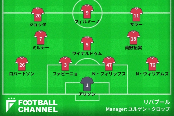 そのような状況の中で、クロップ監督から先発に指名された。南野としては、ミッティラン戦で与えてしまった悪い印象を払拭するための絶好の機会。ポジションは慣れていないインサイドハーフだったが、好パフォーマンスを示し続けることが求められていた。