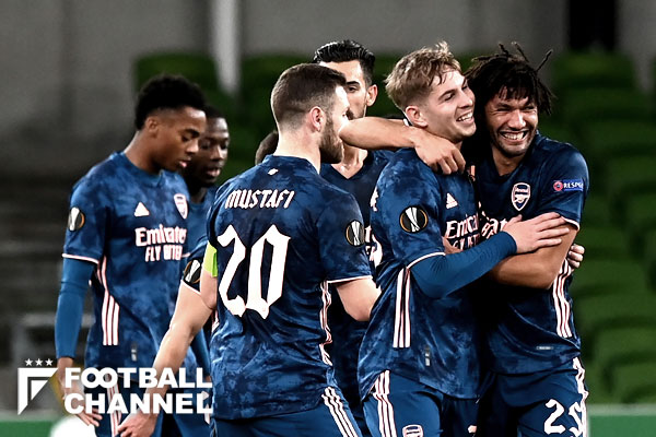 アーセナルはアウェイでアイルランドのダンドークと対戦。前半にエディ・エンケティアとモハメド・エルネニーのゴールで2点を先行し、1点を返されたが2-1のリードで折り返す。
