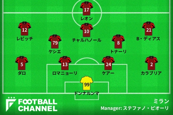 10人になったミランだったが、後半開始早々の49分に追加点を奪うことができた。カウンターからラファエル・レオンが抜け出し、GKロレンツォ・モンティポが飛び出した隙を見逃さずゴール右隅へシュートを流し込んでいる。ステファノ・ピオーリ監督が喜びを爆発させた通り、この1点はかなり貴重だった。