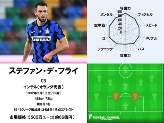 アントニオ・コンテ監督率いるインテルは今季、ユベントスやミランといったライバルを退け11年ぶりにセリエAの頂点に立った。そんな同クラブをDFリーダーとして支えたのが、オランダ代表のステファン・デ・フライ。セリエA屈指のセンターバックとも呼び声高い同選手がいなければ、インテルが歓喜を手にすることはできなかっただろう。