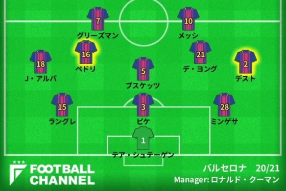 バルセロナ、2020/21シーズンの基本フォーメーション(黄色は新加入選手)