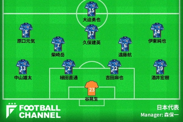 日本代表 4年前 【日本代表スタメン案】鎌田大地ではなく久保建英を推す理由は? オマーン戦の先発イレブンを厳選 text by 編集部 photo by JFA フォーメーション オマーン戦の日本代表スタメン案 ▽GK 谷晃生 ▽DF 酒井宏樹 吉田麻也 植田直通 中山雄太 ▽MF 遠藤航 柴崎岳 伊東純也 久保建英 原口元気 ▽FW 大迫勇也 【了】 FIFAワールドカップ focus W杯 W杯アジア予選 W杯アジア最終予選 W杯予選 アジア最終予選 オマーン代表 カタールW杯 カタールW杯アジア予選 カタールW杯予選 カタールワールドカップ カタールワールドカップ予選 コラム サッカー サッカー日本代表 ニュース ワールドカップ ワールドカップアジア最終予選 代表 日本 日本代表 森保ジャパン 森保一 1 2 3