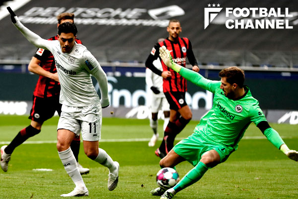 リーグ公式SNSが紹介しているのは、今年1月2日に行われた昨季ブンデスリーガ第14節のフランクフルト戦でアミリが記録したゴール。レバークーゼンは1-2の逆転負けに終わったが、前半10分の先制点はまさに魔法のようなゴールだった。