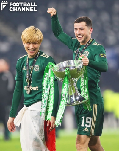 かつてセルティックでプレーした中村俊輔は、在籍中にリーグ優勝3回、スコティッシュFAカップ優勝1回、スコティッシュリーグカップ優勝2回と、計6つのタイトルを獲得している。古橋は加入から半年で最初のタイトルを手にし、今季はさらに3つのトロフィーを掲げるチャンスが残っている状態だ。