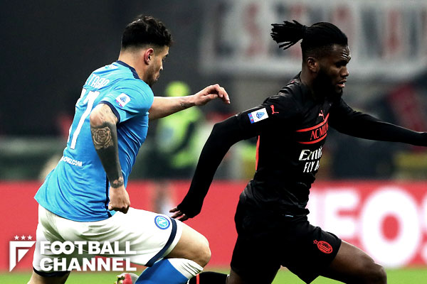 首位インテルを追う2位チームと3位チームの直接対決は、前半5分にMFエリフ・エルマスのゴールでナポリが先制。そのまま1点を追いかける展開が続いたミランだが、残り時間わずかとなった90分にMFフランク・ケシエのシュートでゴールネットを揺らした。