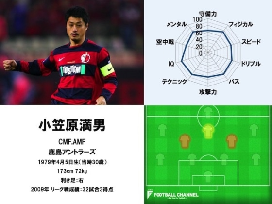 基本データは2009年。06/07シーズンのセリエA・メッシーナでの欧州挑戦から帰国後、鹿島のJリーグ史上初となる3連覇に貢献して自らMVPに選出された伝説的なシーズンである。
