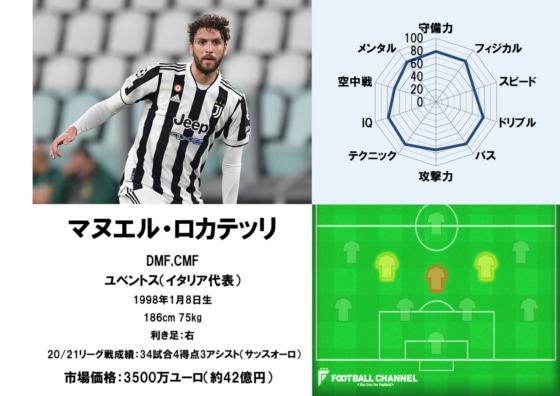 ACミランの下部組織出身のマヌエル・ロカテッリは、2015/16シーズン終盤に18歳の若さでトップチームデビューを飾った。その後は一定の出場機会は得ていたものの主力にはなりきれず、18年夏にサッスオーロへと移籍。サッスオーロではロベルト・デ・ゼルビ監督の下で完成度の高い選手へと成長を遂げ、20年9月にはイタリア代表デビューを果たしている。セリエAとユーロ2020(欧州選手権)での活躍から多くのビッグクラブから関心が寄せられ、21年夏にユベントスへと活躍の場を移した。