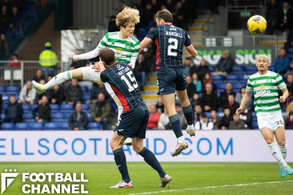 右ハムストリングの怪我から復帰後初先発を飾ったFW古橋亨梧は現地24日、ロス・カウンティ戦の12分に見事なヘディングシュートでセルティックに先制点をもたらした。