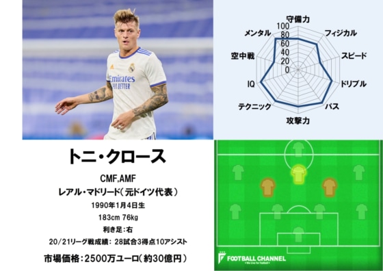 8位:トニ・クロース(元ドイツ代表/レアル・マドリード)