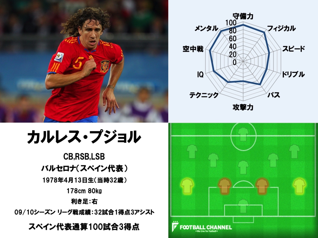 プジョルの能力値で特徴的なのは、やはり「フィジカル」と「メンタル」の強さだ。178cm、80kgとCBとしては小柄な選手だが、“まるで岩のよう”と言われるほどの強靭さを持っている。それがたゆまぬ努力の結果であることは明白だ。