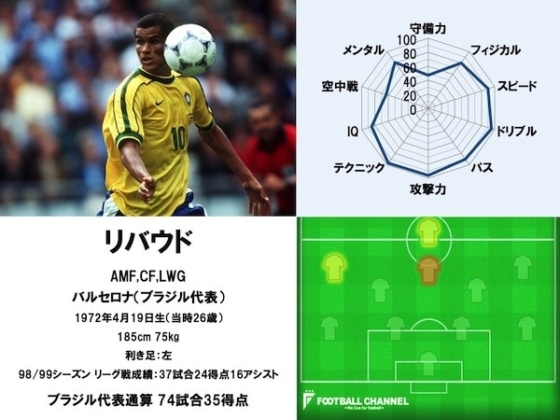 90年代後半から00年代初頭において、世界最強クラスのアタッカーだったのがリバウドである。巧さと強さを兼ね備えた完璧なトップ下であり、その力はまさに圧巻だった。