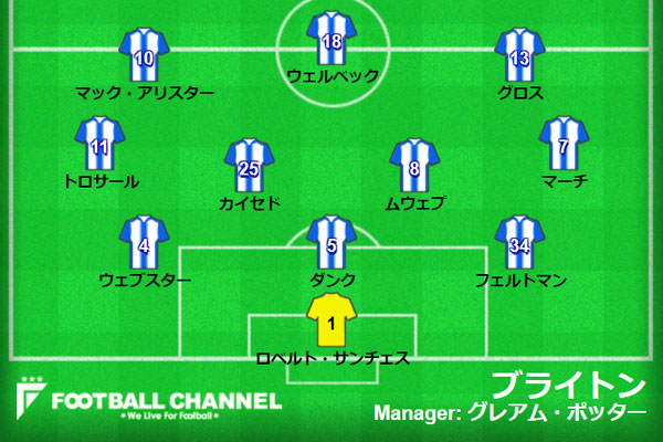 ブライトン、マンチェスター・ユナイテッド戦予想フォーメーション