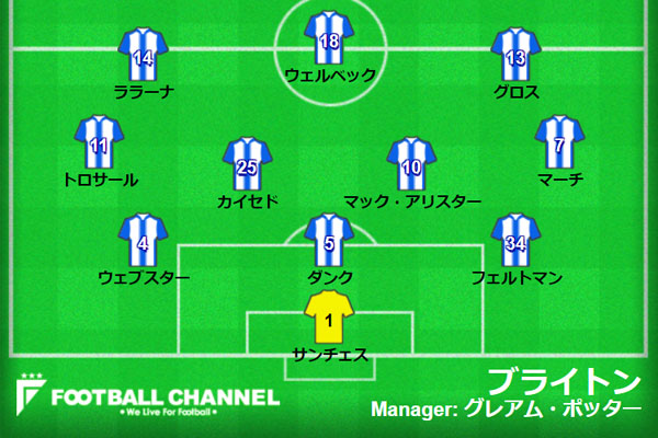 ブライトンの予想フォーメーション