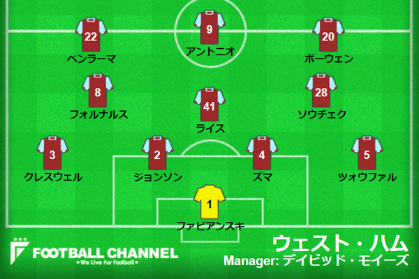 ウェスト・ハムの予想フォーメーション