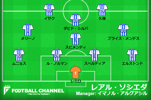 レアル・ソシエダ、バルセロナ戦の予想フォーメーション