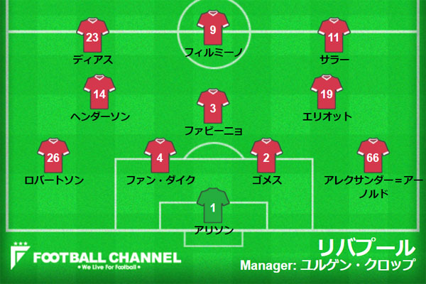リバプールの予想フォーメーション