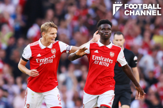 右のサカとトップ下のウーデゴール。アーセナルが誇る最強コンビで決めたゴールは反撃ののろしとなり、アーセナルは85分に逆転ゴールをゲット。逆転勝利で開幕4連勝を果たしている。