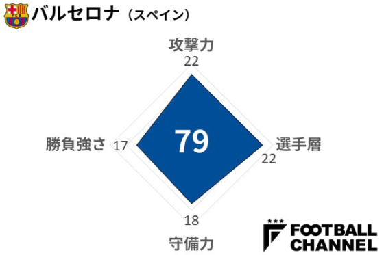 戦力値79(攻撃力22、守備力19、選手層22、勝負強さ17)