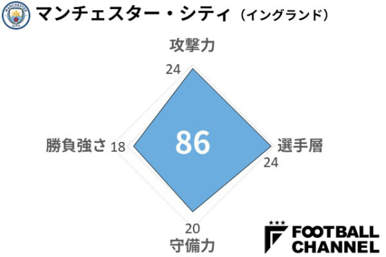 戦力値86(攻撃力24、守備力20、選手層24、勝負強さ18)