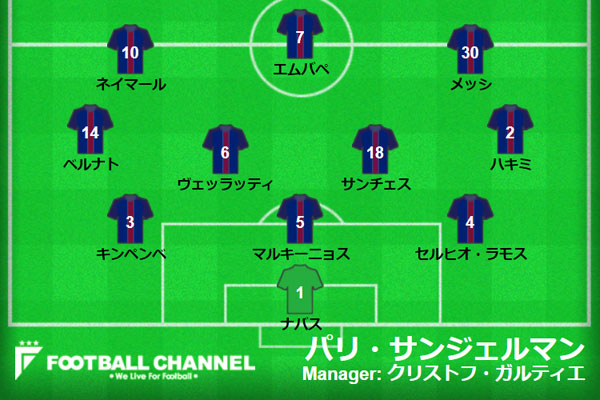 パリ・サンジェルマンの予想フォーメーション