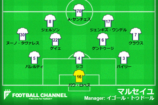 マルセイユ、フランクフルト戦の予想フォーメーション