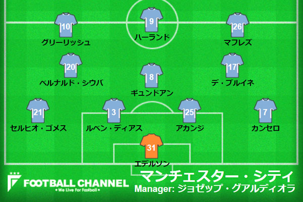 マンチェスター・シティ、ドルトムント戦の予想フォーメーション