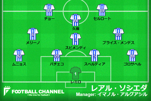 レアル・ソシエダ、エスパニョール戦の予想フォーメーション