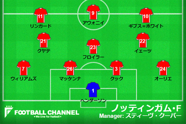 ノッティンガム・フォレストの予想フォーメーション