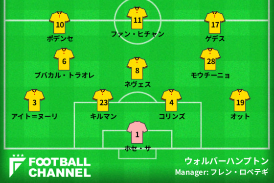 ウォルバーハンプトンのアーセナル戦予想フォーメーション
