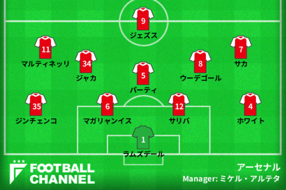 アーセナルのウォルバーハンプトン戦予想フォーメーション