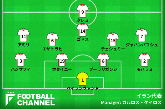 イラン代表、イングランド代表戦の予想フォーメーション
