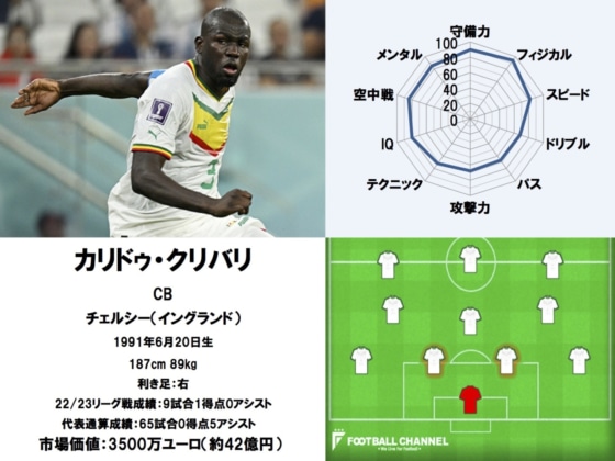 4位はアフリカの壁と称されるカリドゥ・クリバリだ。ナポリ在籍時に世界最高峰のCBに成り上がったこの男は、2018年にセネガル代表を4大会ぶり2回目のワールドカップに導き、今年はアフリカネイションズカップ初優勝、さらに2年連続のW杯出場に大きく貢献している。