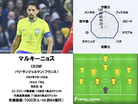 また、高い戦術理解度と「パス」スキルを活かしてアンカーでもプレーすることが出来る。ピッチ中央で相手の攻撃の芽を摘み取り、正確なパスでゲームメイクできるこの男は、中盤でも存在感抜群だ。さらに攻守で見せる「空中戦」の強さも武器。28歳と成熟したブラジル代表DFの実力は、名だたる名手が集うカタールW杯内でも屈指だ。
