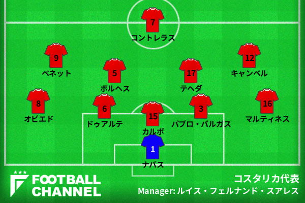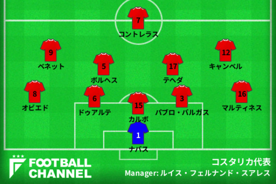 コスタリカ代表の予想フォーメーション