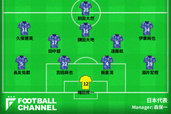 負傷明けの守田英正はベンチスタート。中盤底は遠藤航と田中碧のコンビになる。2列目には久保建英や鎌田大地が入り、ワントップは前田大然だ。