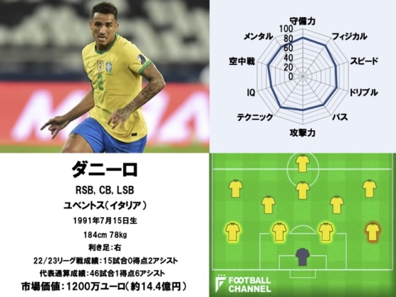名門サントスで頭角を現したダニーロは2011年12月に行われたクラブW杯にネイマールやガンソなどと共に参戦し、バルセロナを相手に世界レベルのサッカーに触れた。2012年に海外初挑戦として加入したポルトで高い評価を得るのに成功し、その後はレアル・マドリードやマンチェスター・シティ、ユベントスなどの欧州切ってのビッグクラブにも在籍した経験を持つベテランSBだ。