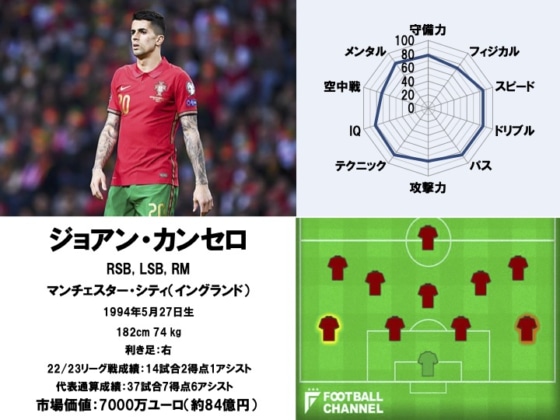 1位:ジョアン・カンセロ(ポルトガル代表/マンチェスター・シティ)